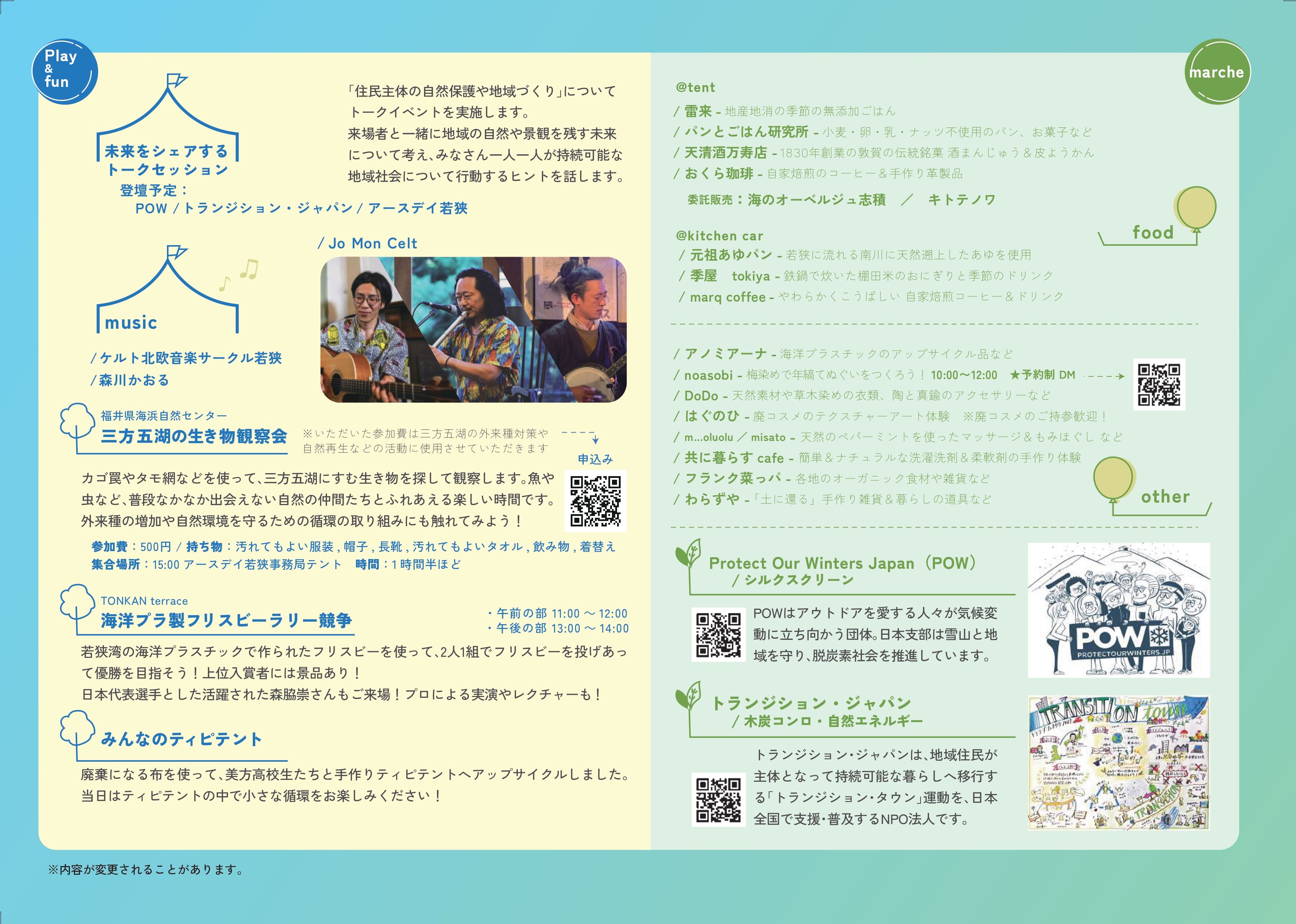 他にもいろんな企画がありますので、10/12はアースデイ若狭へ遊びに来てください♪
