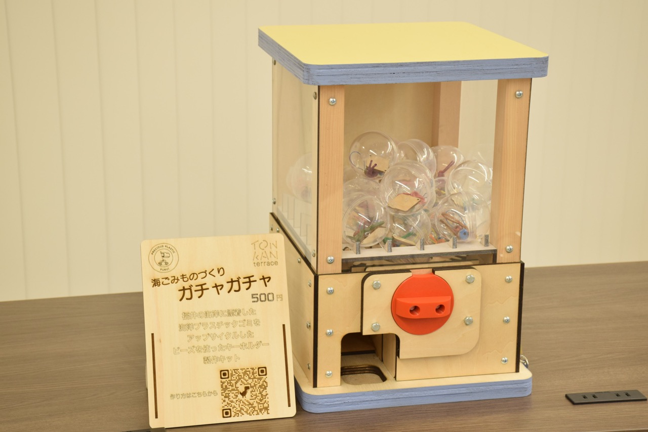 さらには、今回のイベントで初お披露目となる手作りガチャガチャを回すと福井県の海岸に漂着した海ごみをアップサイクルして製作したビーズを使ったキーホルダー製作キットが出てきます!