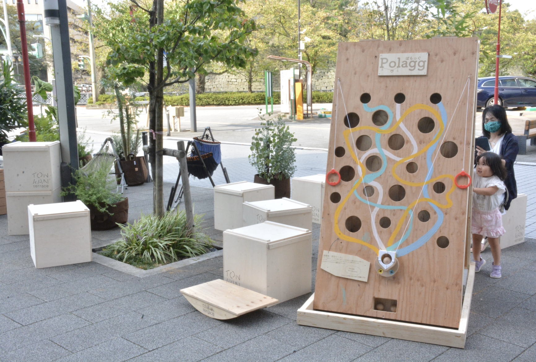 ぽらっぐの他にも、シーソーや自由に配置して椅子やテーブルにできる正立方体の椅子など、