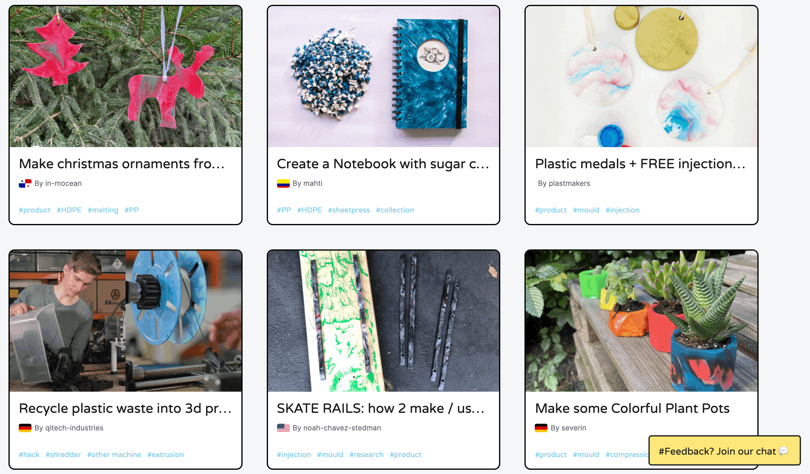 プラスチックゴミを再利用するための粉砕機や押出機、射出成形機などなどの機械を自作・オープンソース化したことで、世界中で真似できる状態になり、実際共感した世界中の人がその土地土地で機械を作り、その土地のプラスチックゴミをリサイクルしたものづくりなどを行っています。