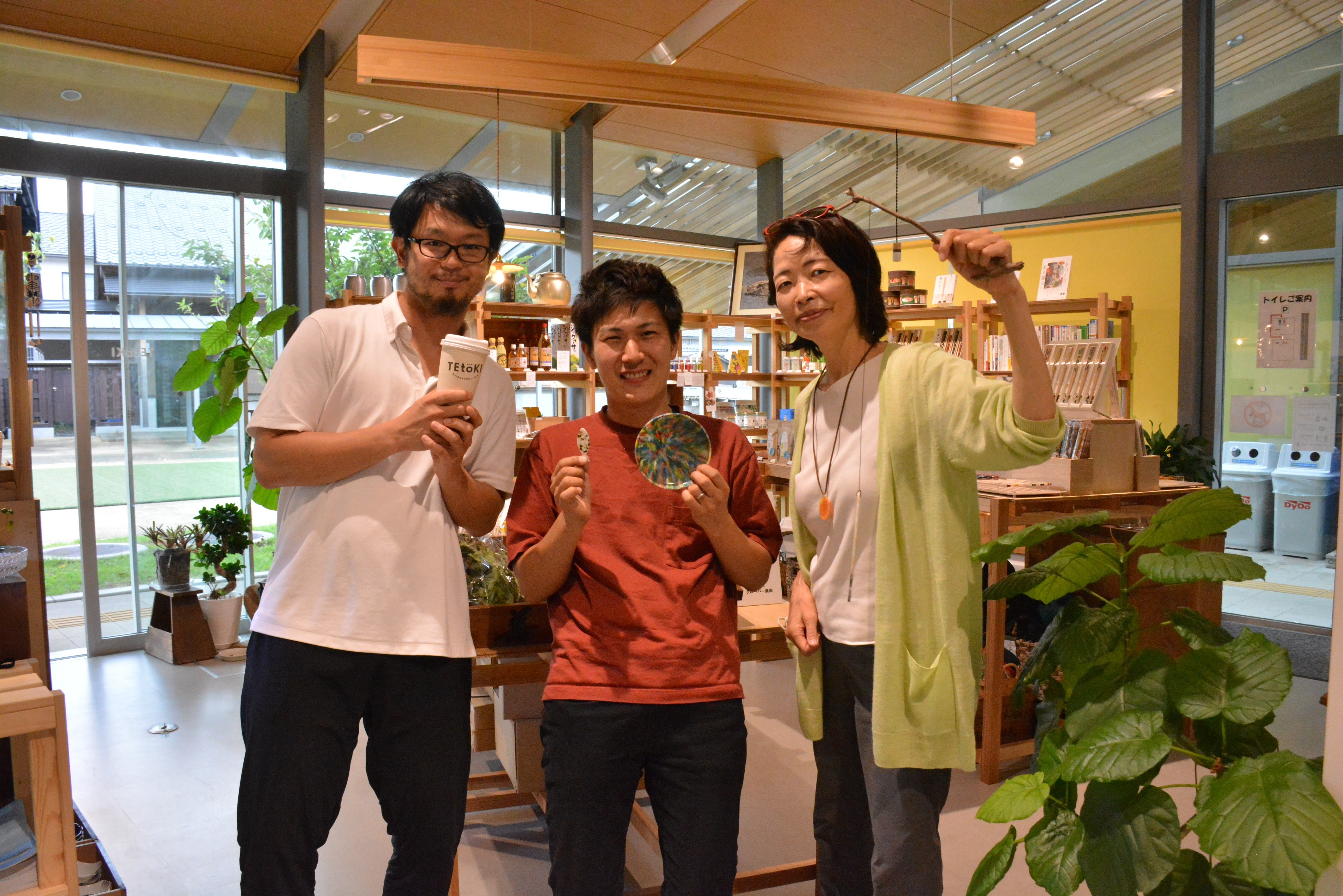 左:tetoki店主の高野さん 真ん中:私 右:アノミアーナ代表の西野さん
