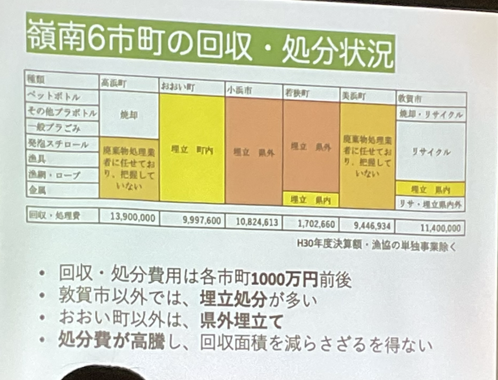 福井県全体としては、毎年5000万円〜1億円くらいの海ごみ処理費として税金が投入されているらしいです。これもかなりの衝撃。
