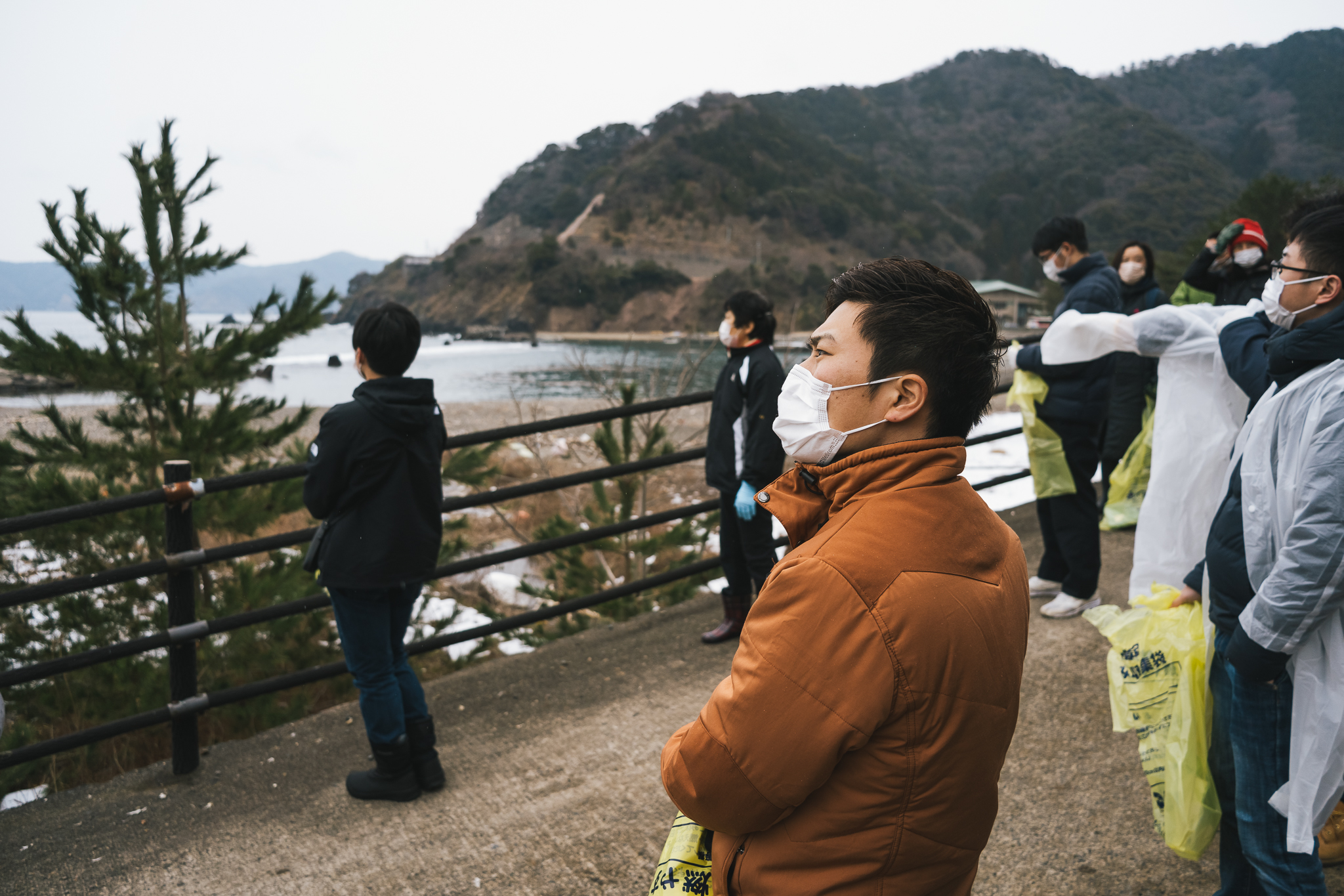 地元漁師や民宿の方々をはじめとした若狭の方々や、福井市、鯖江市から集まった有志ら30人ほどでビーチクリーンを1時間ほど行いました。