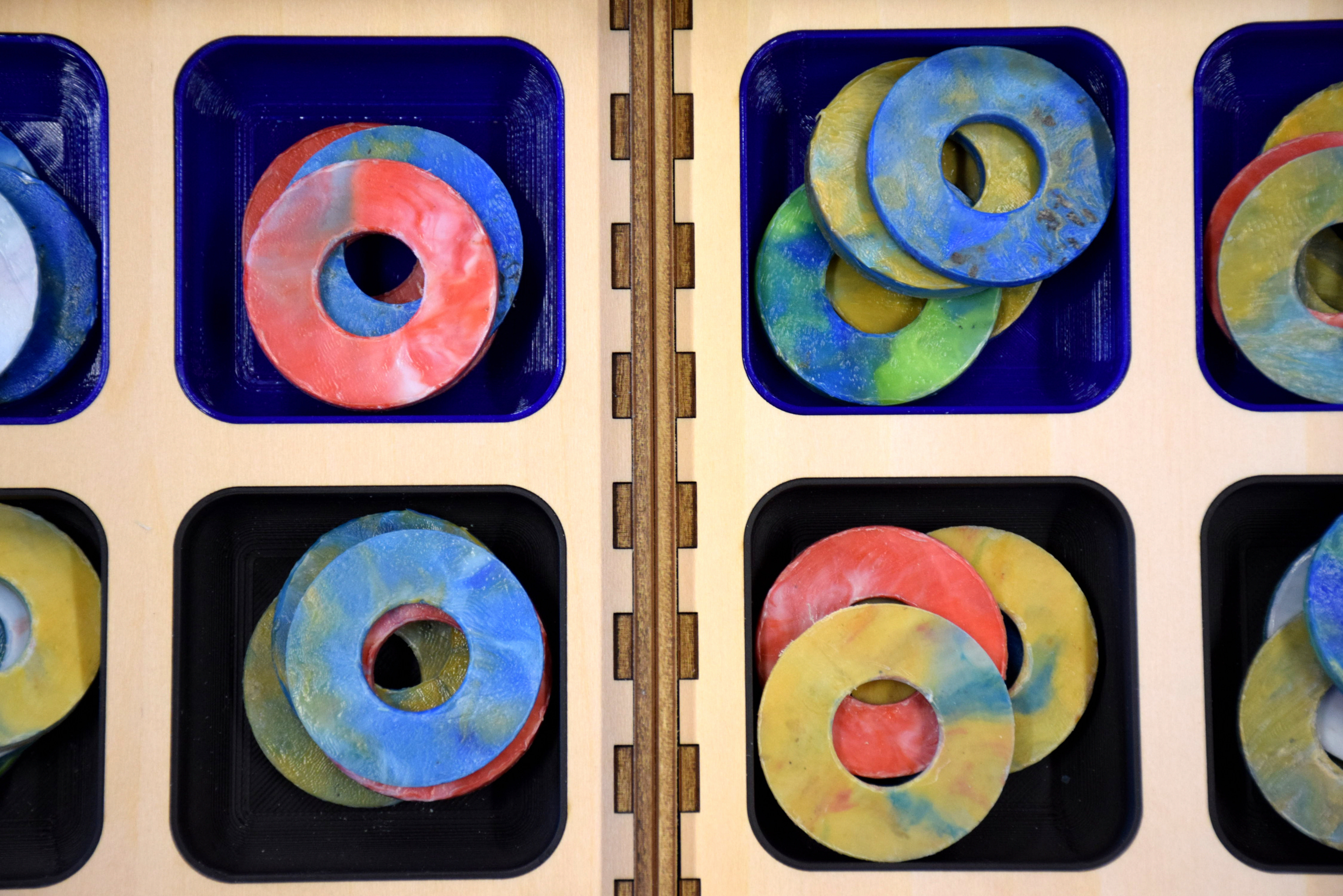 海ごみ自体のカラフルな色がそのままシマシマ模様となることで、ゲーム終了時には「年縞」が知らず知らずに完成するんです。