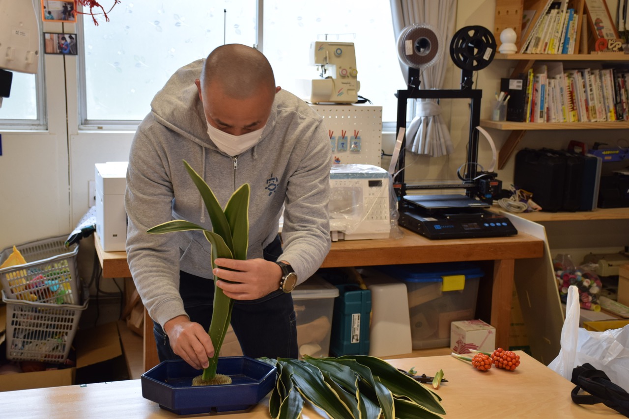 葉っぱ一枚一枚に念を込めるように丁寧に作業をされている杉本住職の姿が印象的で、葉っぱの曲げ具合や、剣山に挿す角度、赤い実の見え方など、繊細な作業で生け花の奥深さや精神性のようなものを目の当たりにしました。