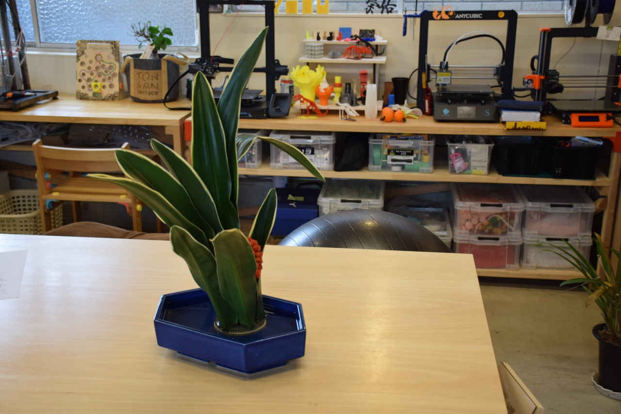 あわら市にある天王山安楽寺の住職の杉本成範さんと坊守のあきさんがトンカンテラスに遊びに来てくださいまして、なんとトンカンテラスのために正月の生け花でもある「おもと(万年青)」を生けてくださいました。