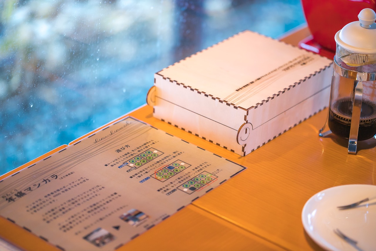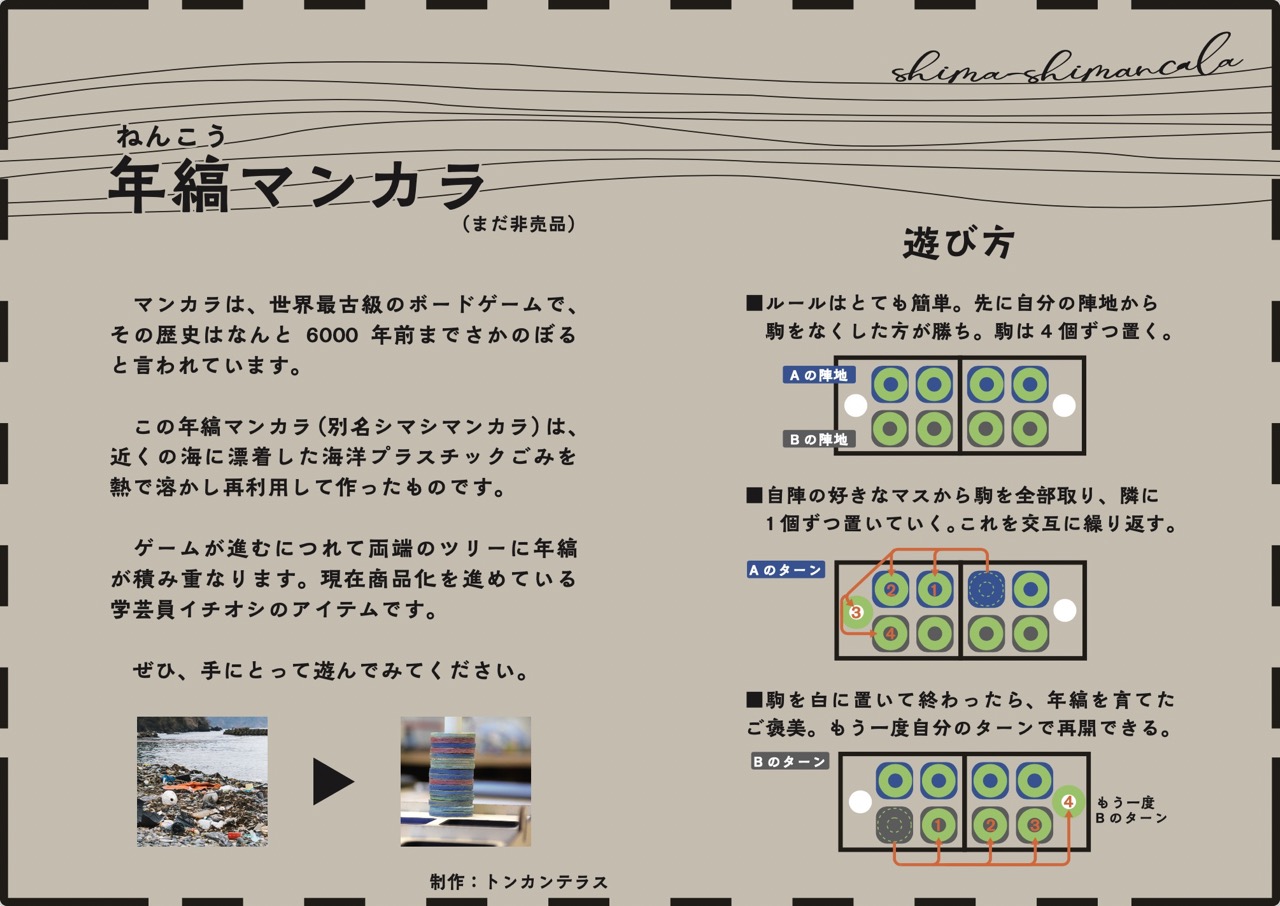 若狭湾の海ごみをアップサイクルして制作したボードゲーム「年縞マンカラ」が、なんと福井県立年縞博物館内のcafe縞さんに置いていただけることになりました!