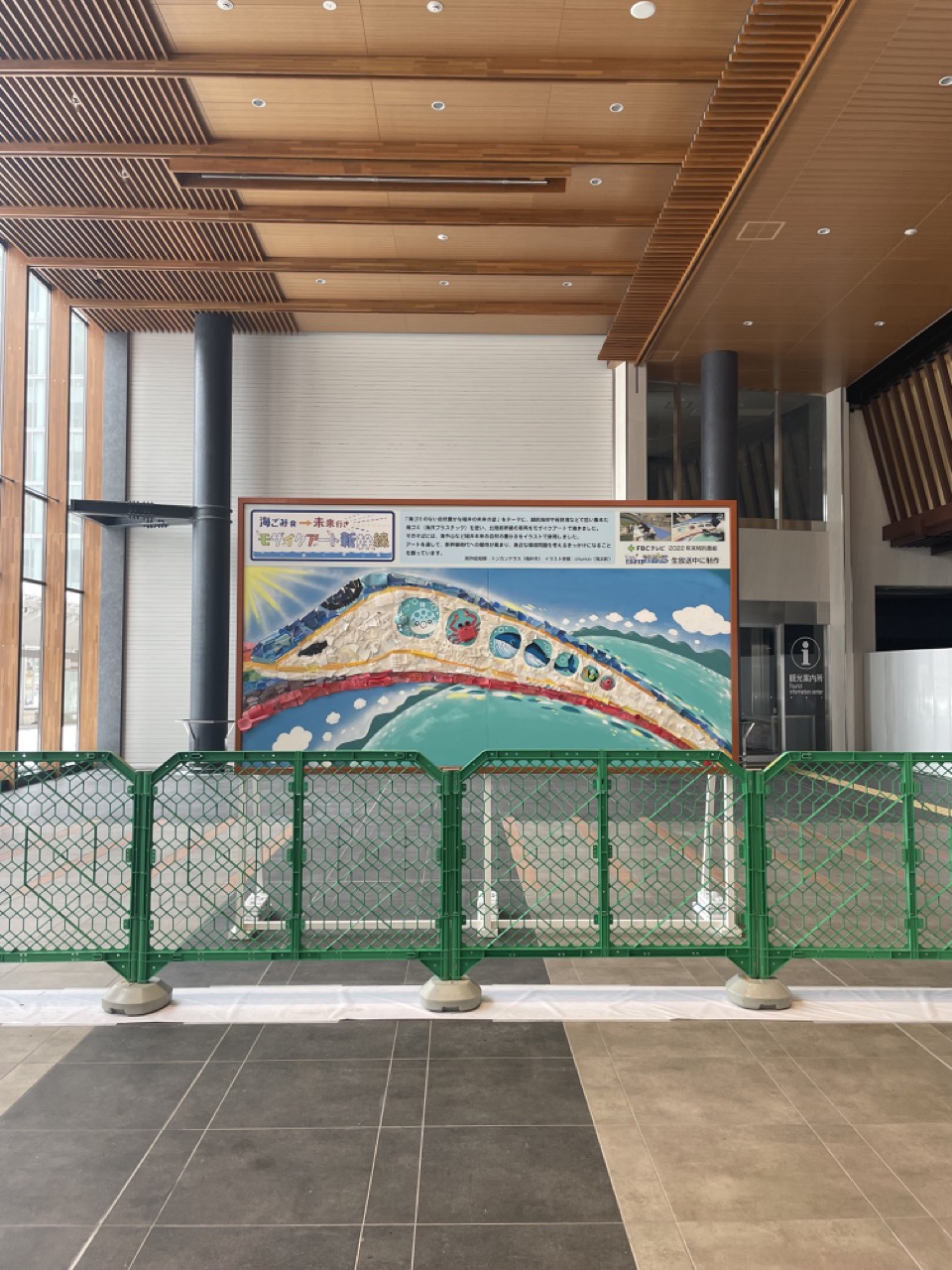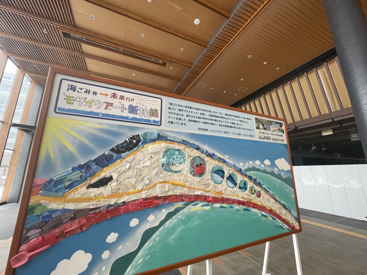 昨年末に福井放送(FBCテレビ)の企画で、製作総指揮という形で参画させていただきました「海ごみモザイクアート」が先日の2月1 日よりJR福井駅構内の東口側(アオッサ側)に、展示していただいております!