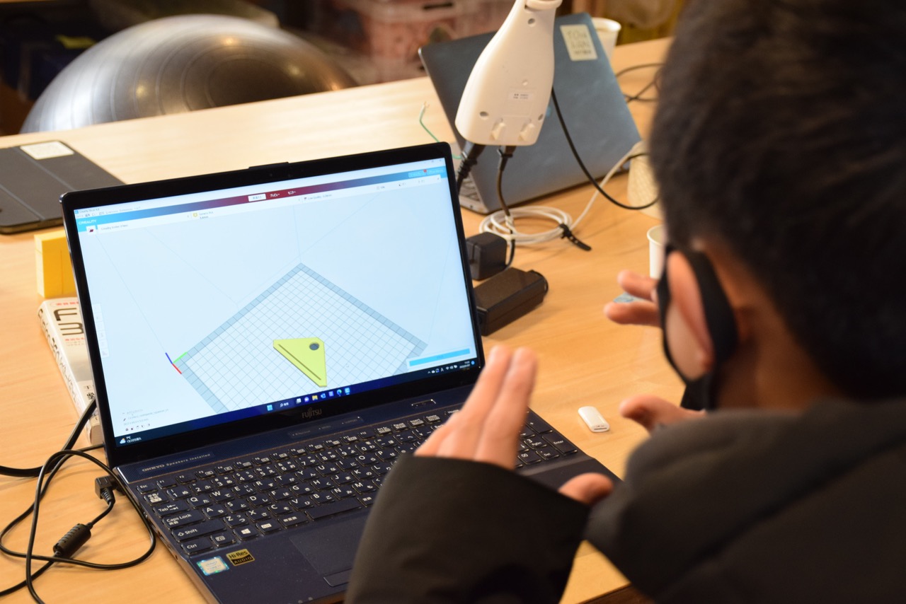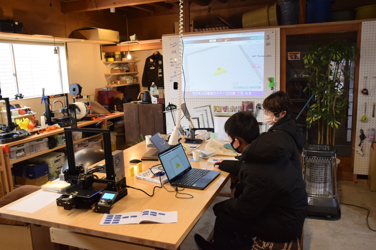 昨年末のクリスマスに3Dプリンターをプレゼントしたは良いものの、3Dデータの作り方や、3Dプリンターの使い方がわからず困っているという悩みを解消するため、小学六年生の男の子が3Dプリンターとパソコン持参で遊びに来られました!