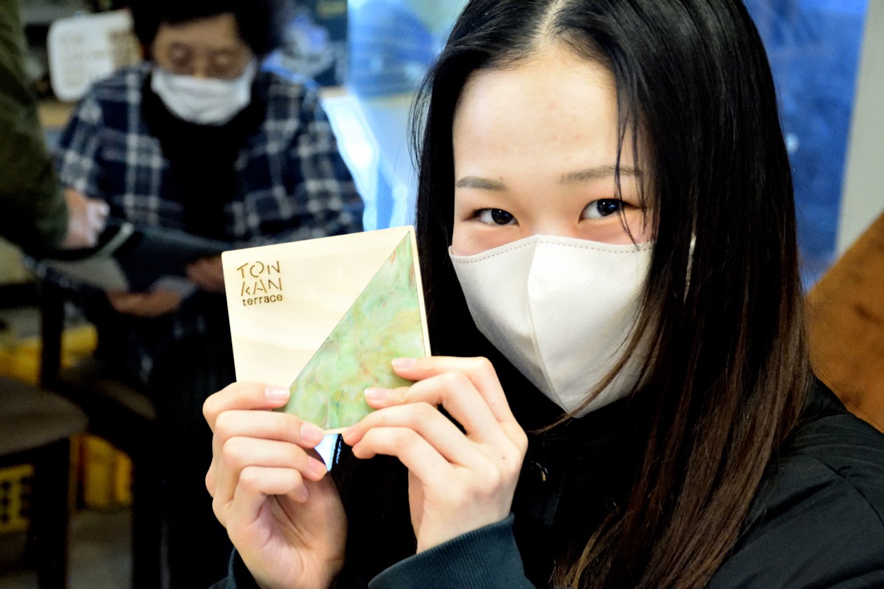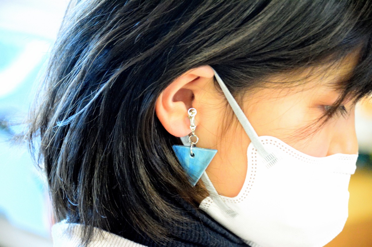 ビーズアクセサリーを作る方がいたり、コースターを作る方がいたり、海ごみタイルからレーザーカッターを使って三角形に切り出して、イヤリングにする方がいたりと、おのおのが好きなものづくりを楽しんでおられました!
