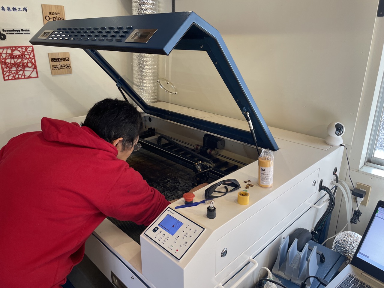 レーザーカッターの出力条件の設定などわからない点は補助しながらも、利用者の方に操作していただきます♪