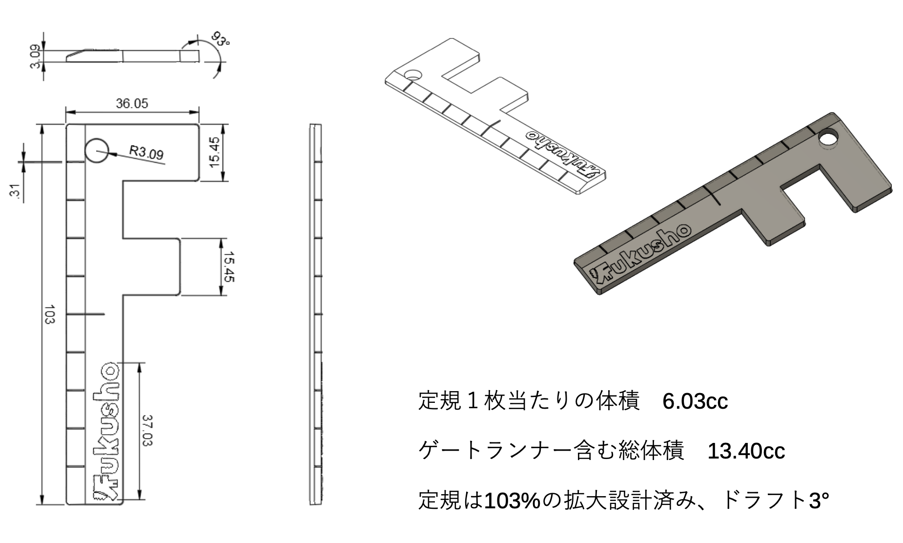 材質を考慮した収縮率や、金型から外す際の抜き勾配などを計算して設計を行なっていきます。