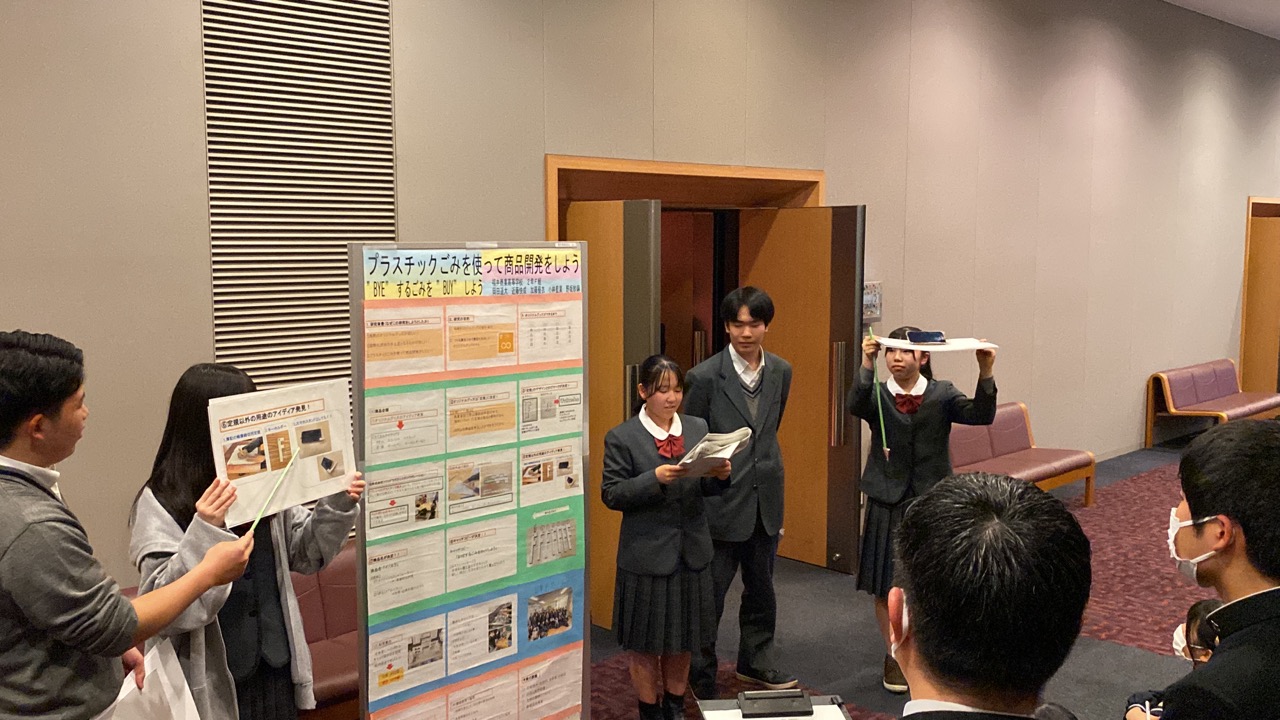 県内高校が一堂に集まる探究学習の発表会でも、プラスチックゴミをつかって商品開発しよう!という発表内容で、ここまでの一連の商品開発の流れを発表されてました。