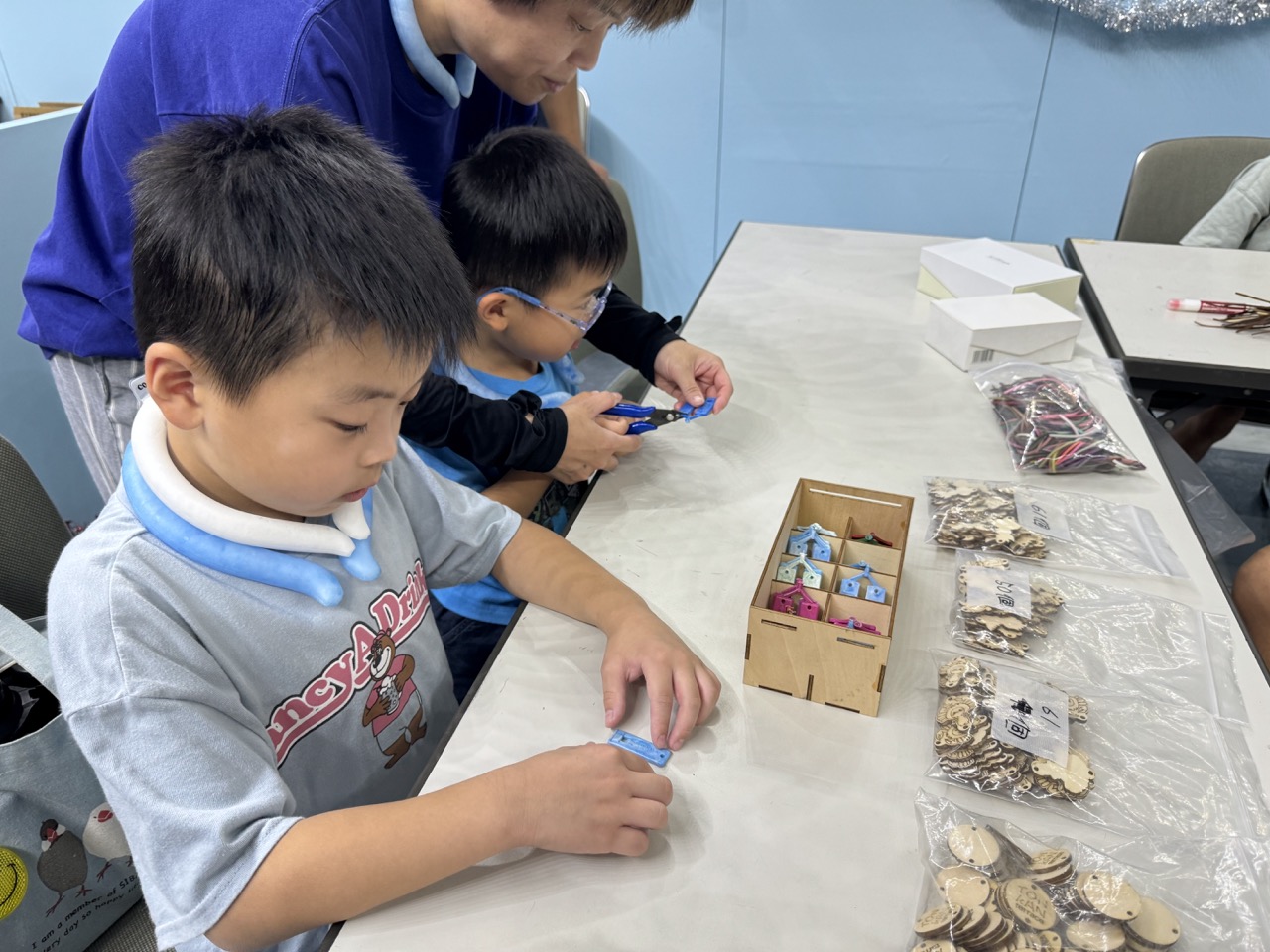 防犯用のホイッスル作り、カラビナキーホルダー作り、虫眼鏡作りといろいろなものづくりを楽しんでいただきました。