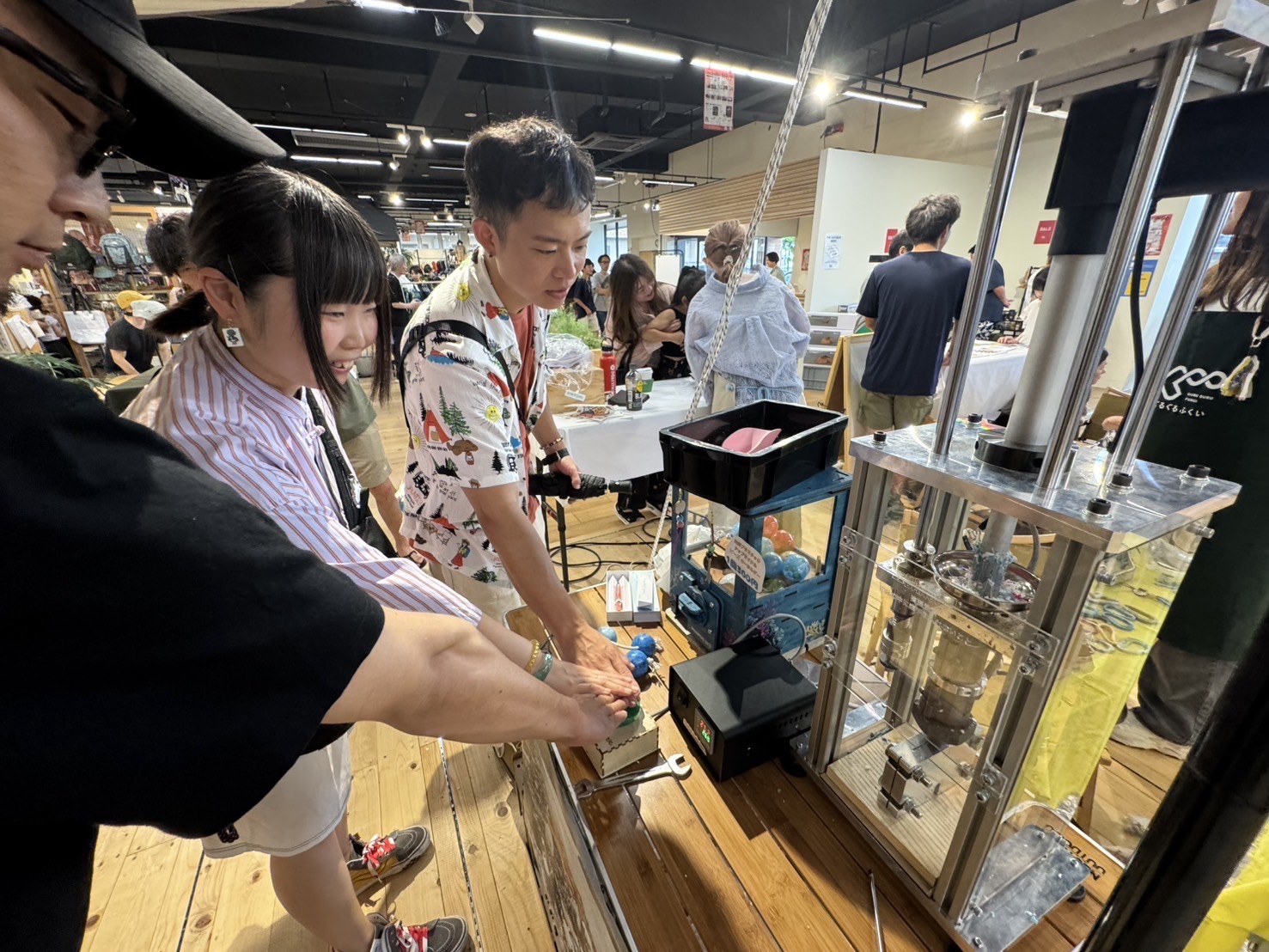 粉砕機や成形機を持ち込み、実演・体験をできるようにしたので、来られた方にはアップサイクルの流れを楽しく学んでいただけました。