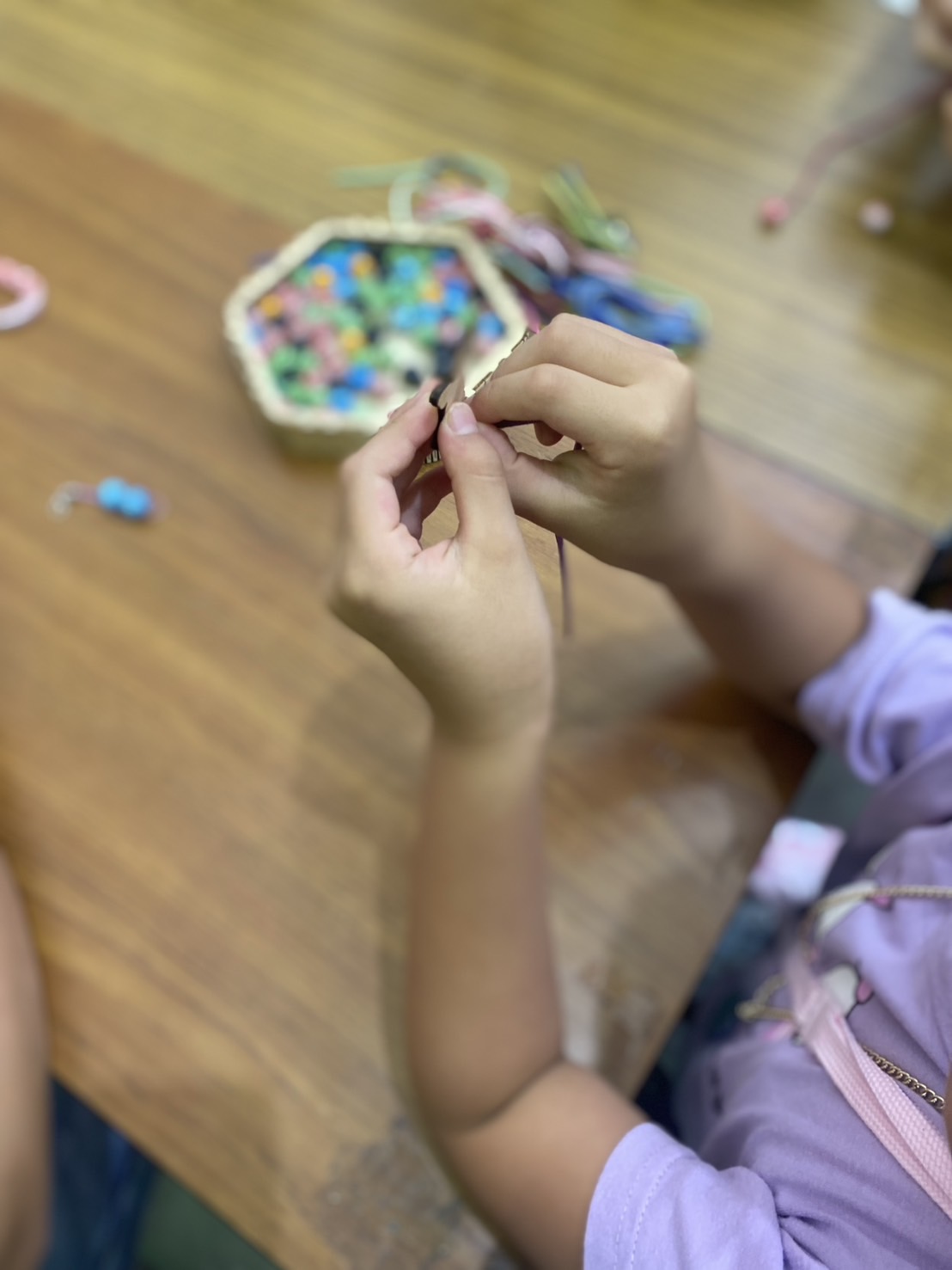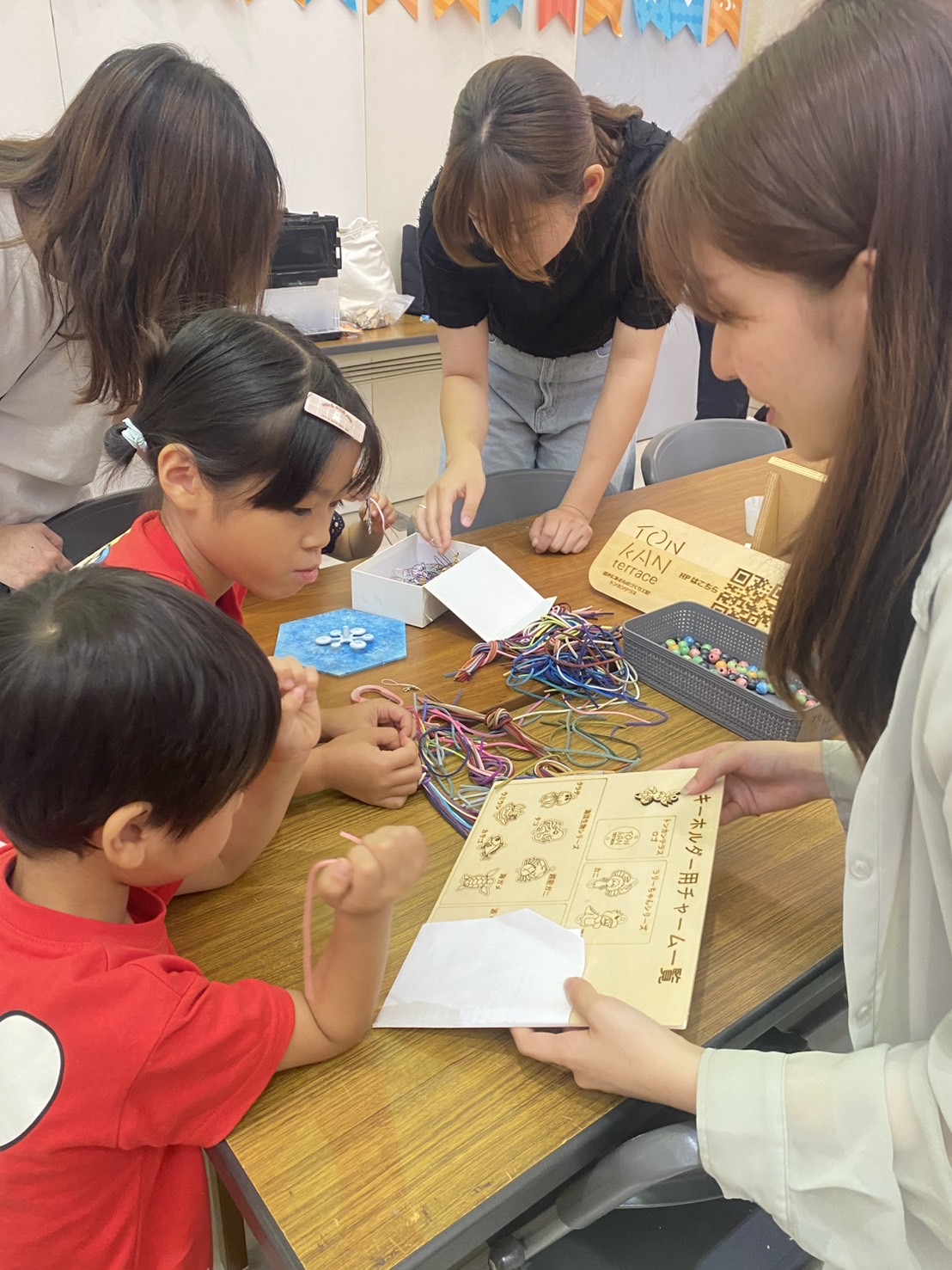 海洋プラスチックのビーズやひもを使って、世界にひとつだけのオリジナルキーホルダーを完成させました。丸結びの工程では「初めてできた!」と喜んでくれる子もいて、スタッフとしてもとても嬉しい瞬間でした!