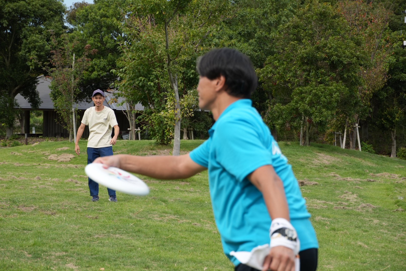 森脇さんは自身もフライングディスクの元日本代表選手であり、フライングディスクの文化を関西圏を中心に全国へ普及することに尽力されている方で、昨年福岡で開催された日米韓合同で開催された海洋ゴミ対策のシンポジウムでお会いしてからの繋がりです。